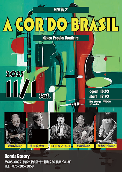 日笠智之 a Cor do Brasilライブのご案内です。ぜひお越しくださいませ。